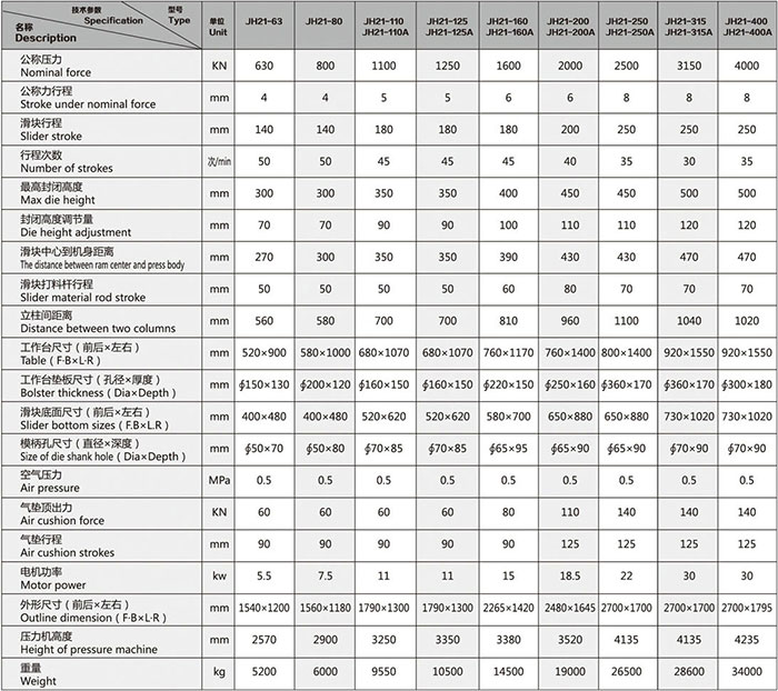 JH21系列開式固定臺(tái)壓力機(jī)