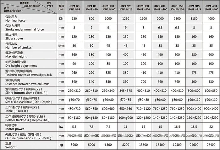 此系列壓力機屬通用型開式固定臺曲柄壓力機。
